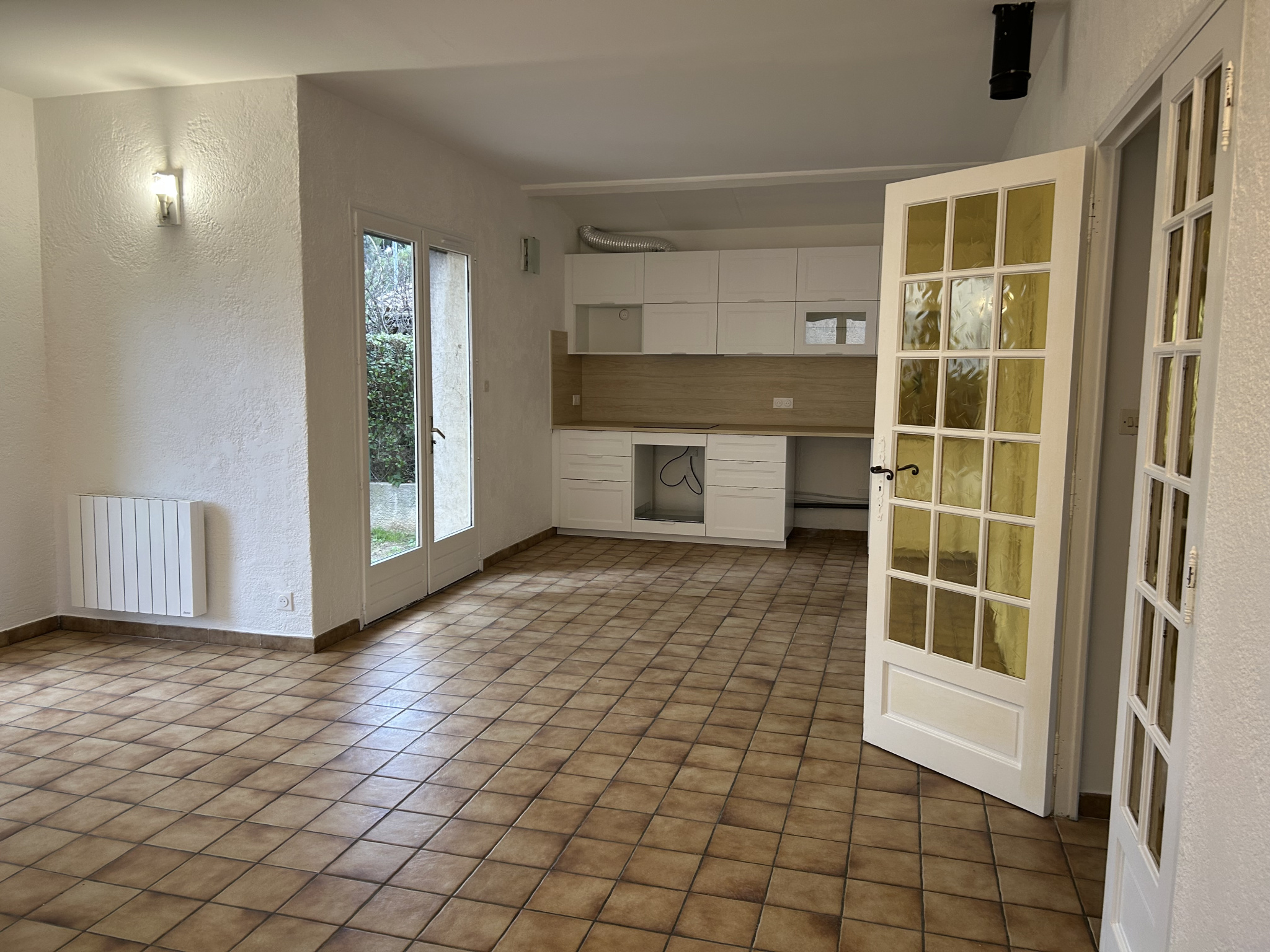 Projetimmogestion vous propose à la location, au calme, cette agréable villa T4 de 97m² en R+1 avec environ 200m² de jardin et un garage dans une copropriété de 4 lots avec portail électrique. Entièrement réhabilitée, elle se compose au RDC d'un séjour de 35m² avec cuisine ouverte, WC, buanderie, chambre de 13m² et accès au garage. A l'étage, 2 chambres de 8 et 11m² dont une avec balcon, une salle d'eau avec douche à l'italienne, WC. Chauffage électrique, terrasse. 1420€ dont 70€ de provisions sur charges. Contact: projetimmogestion@gmail.com ou 04.91.35.41.18